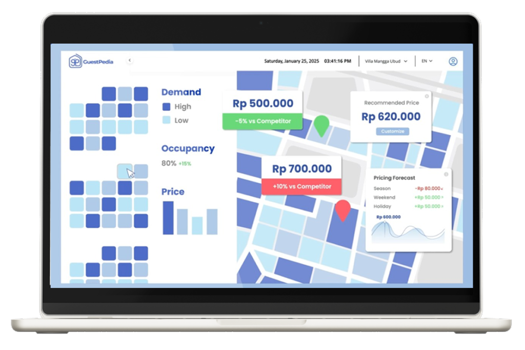 We are an Indonesian hospitality technology company that provides an all-in-one platform: PMS, Channel Manager, Booking Engine, and AI-based Revenue Management. Smart solutions for pricing automation, profit improvement, and operational ease.
